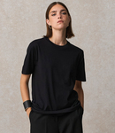 Jersey knit.Modern and comfortable fit.Ribbed collar.Taped neck.Side seams.Twin needle sleeves and hem.Unbranded size label at neckline.